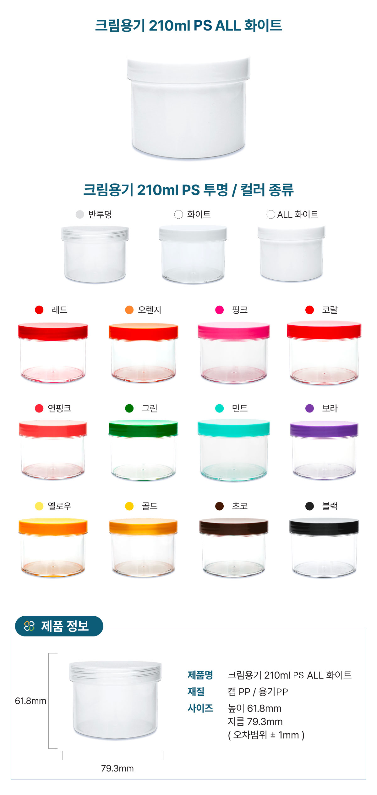 크림용기 210ml PS ALL 화이트